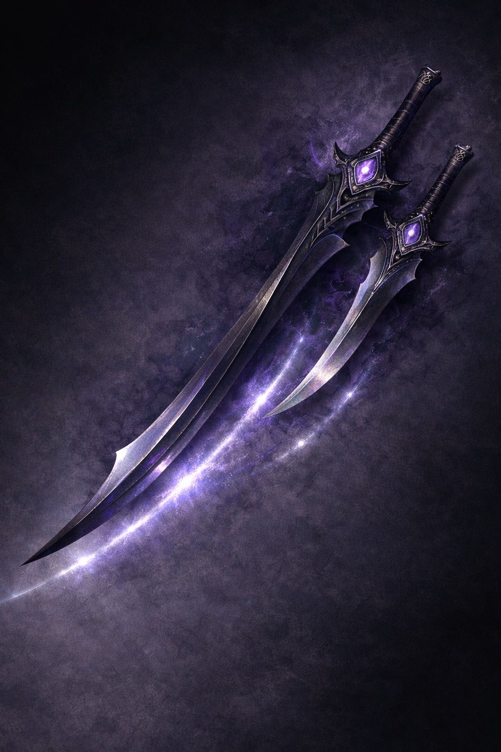 A paired longsword and shortsword once carried by a legendary Veilwalker scout who mapped forgotten paths between shadow-rifts in the Underrealm. Each blade may be found alone. When reunited, the blades test their bearer and seek the one worthy to carry both.